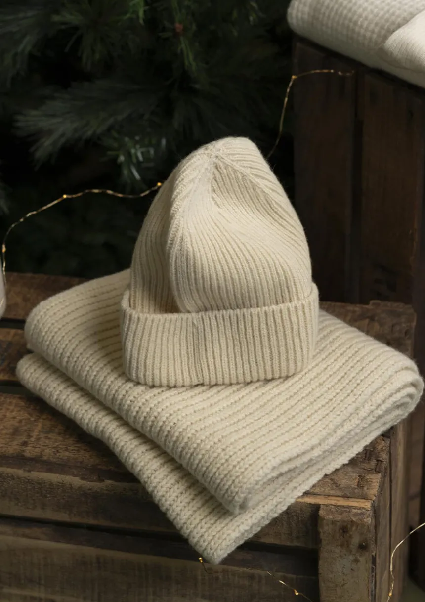 - Lot écharpe CHANTERELLE et bonnet PRAPOUTEL écru avec un coffret cadeau