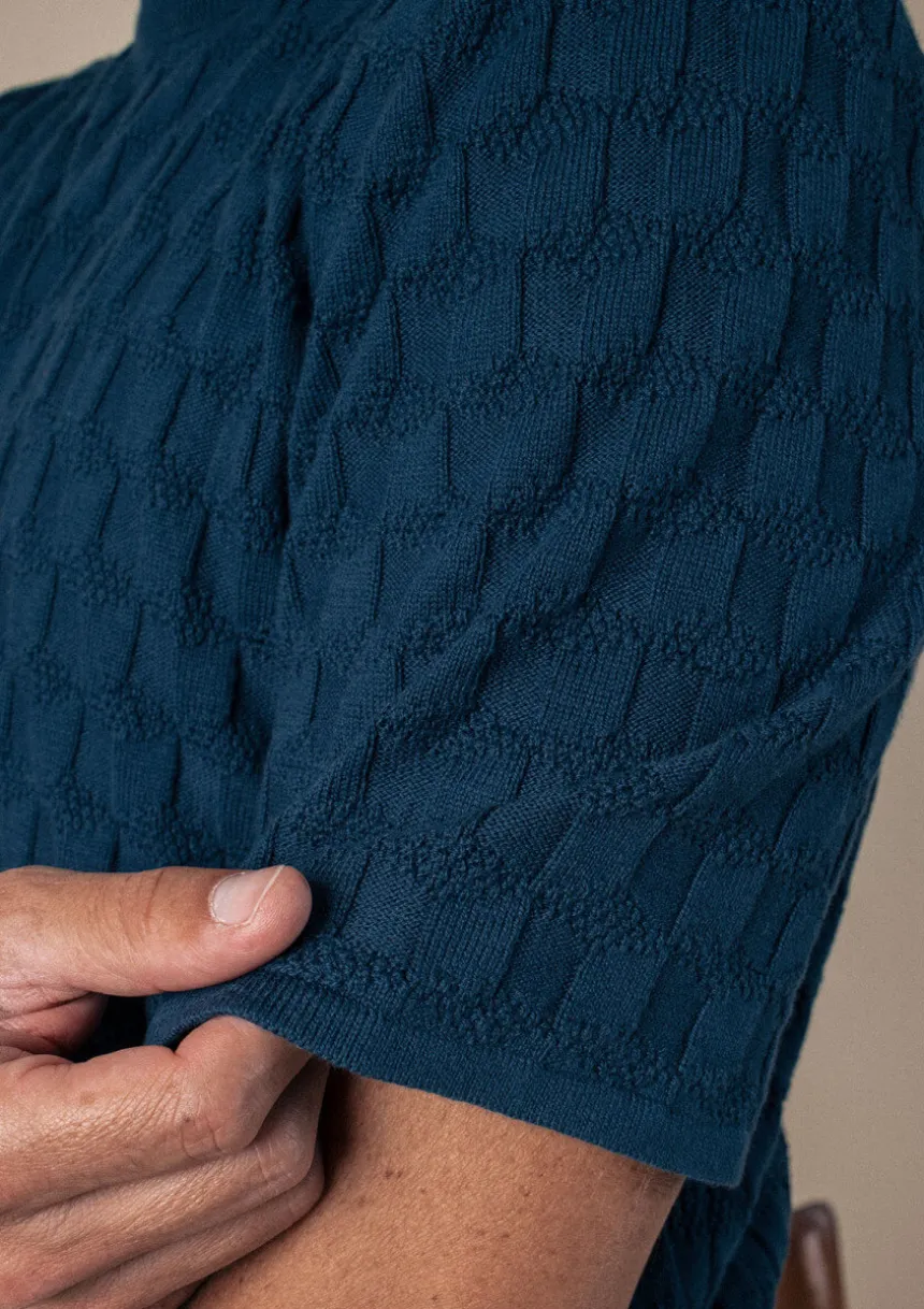 Avec sa coupe plutôt oversized, le t-shirt en maille POLYGONE bleu marine apportera de la texture à votre tenue en toute modernité.