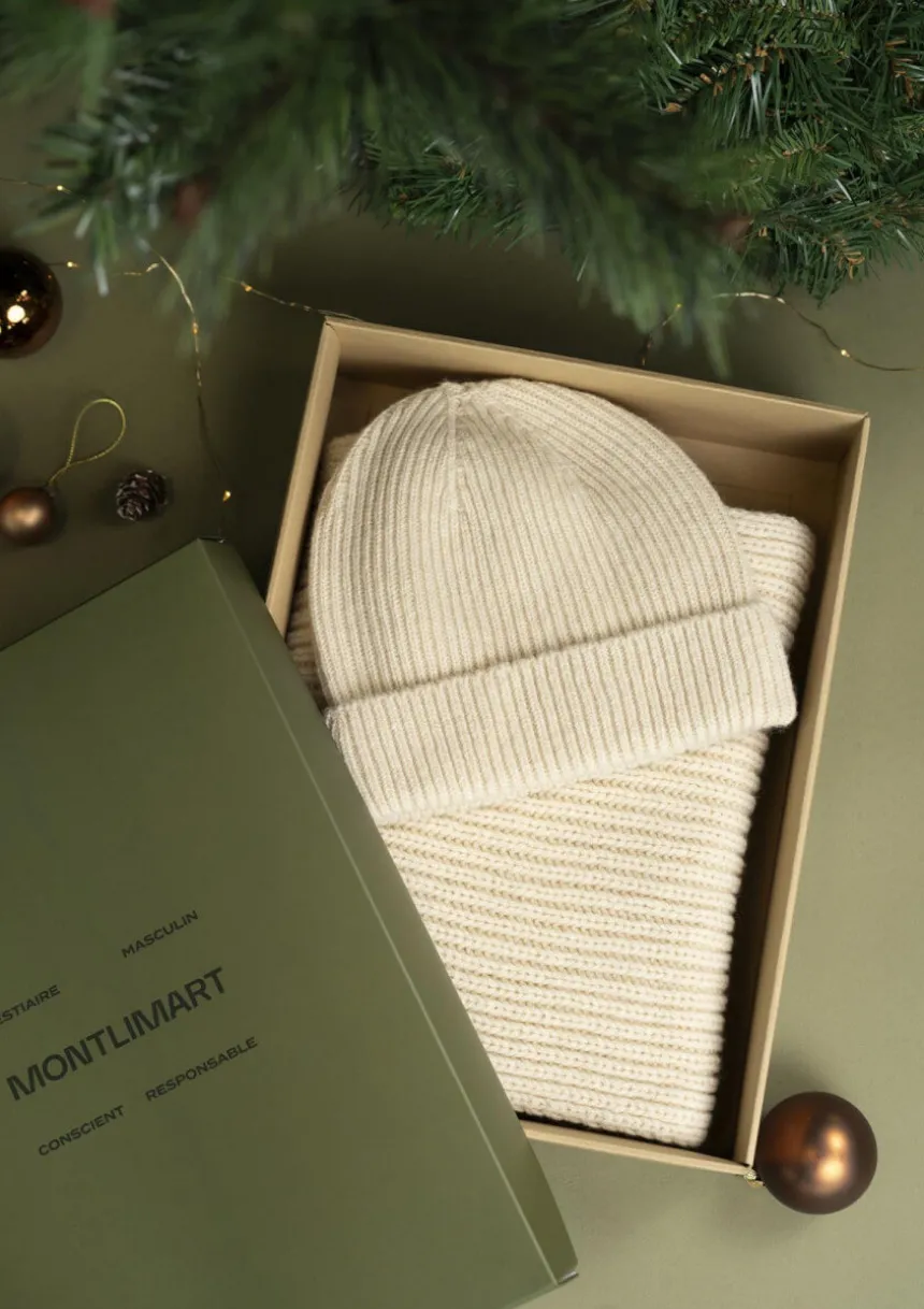 - Lot écharpe CHANTERELLE et bonnet PRAPOUTEL écru avec un coffret cadeau