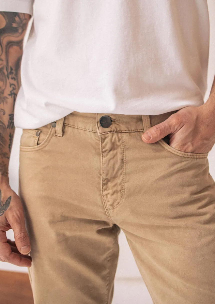 Nous vous conseillons de laver votre pantalon sur l’envers à 40°C, avec des couleurs similaires, et, de ne pas le placer au sèche-linge. Privilégiez un séchage à plat et un repassage sur l’envers.