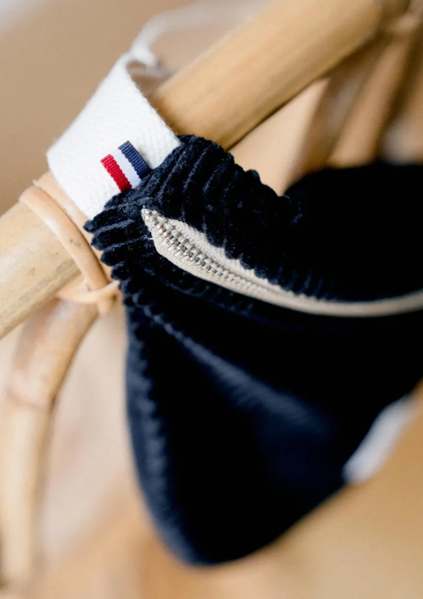 - Réalisée à partir de velours upcyclé (stock dormant revalorisé)